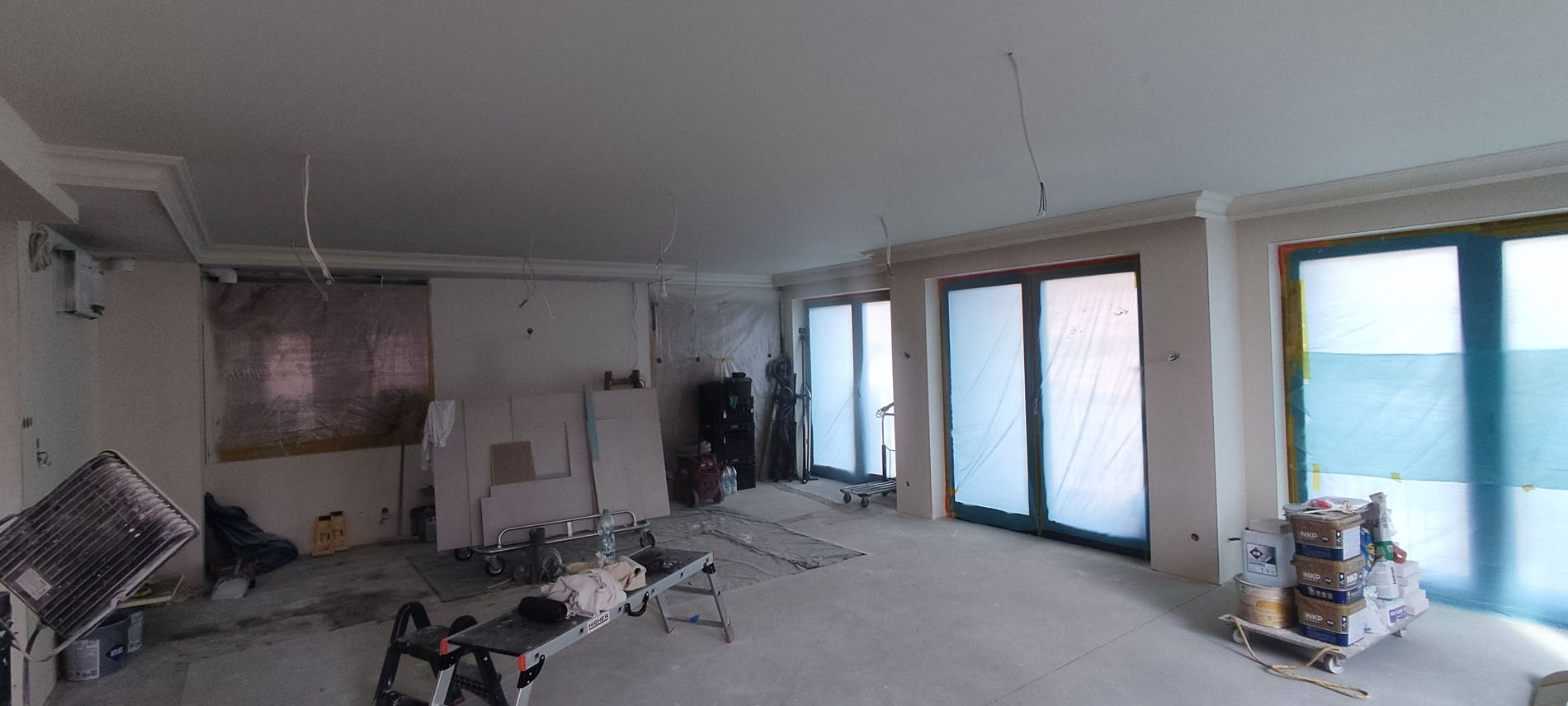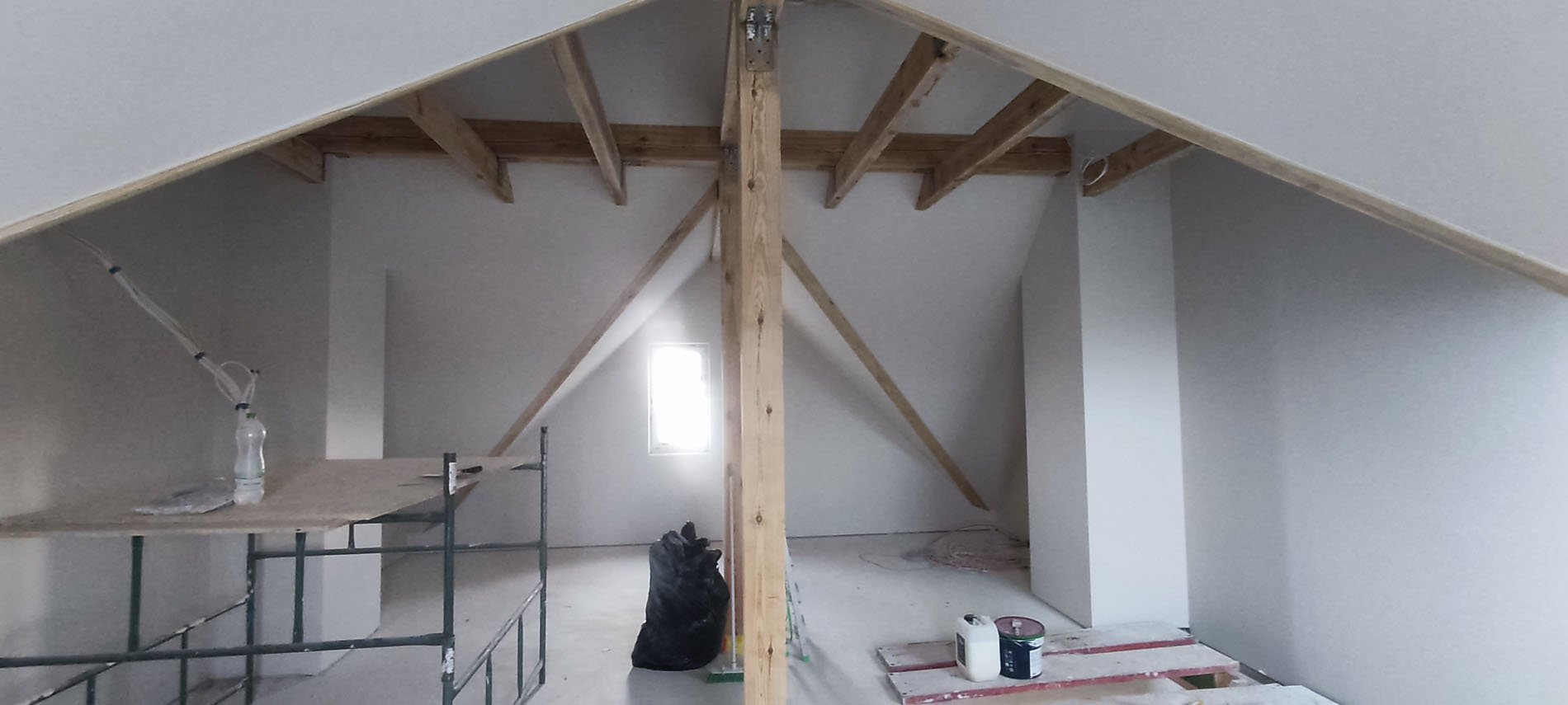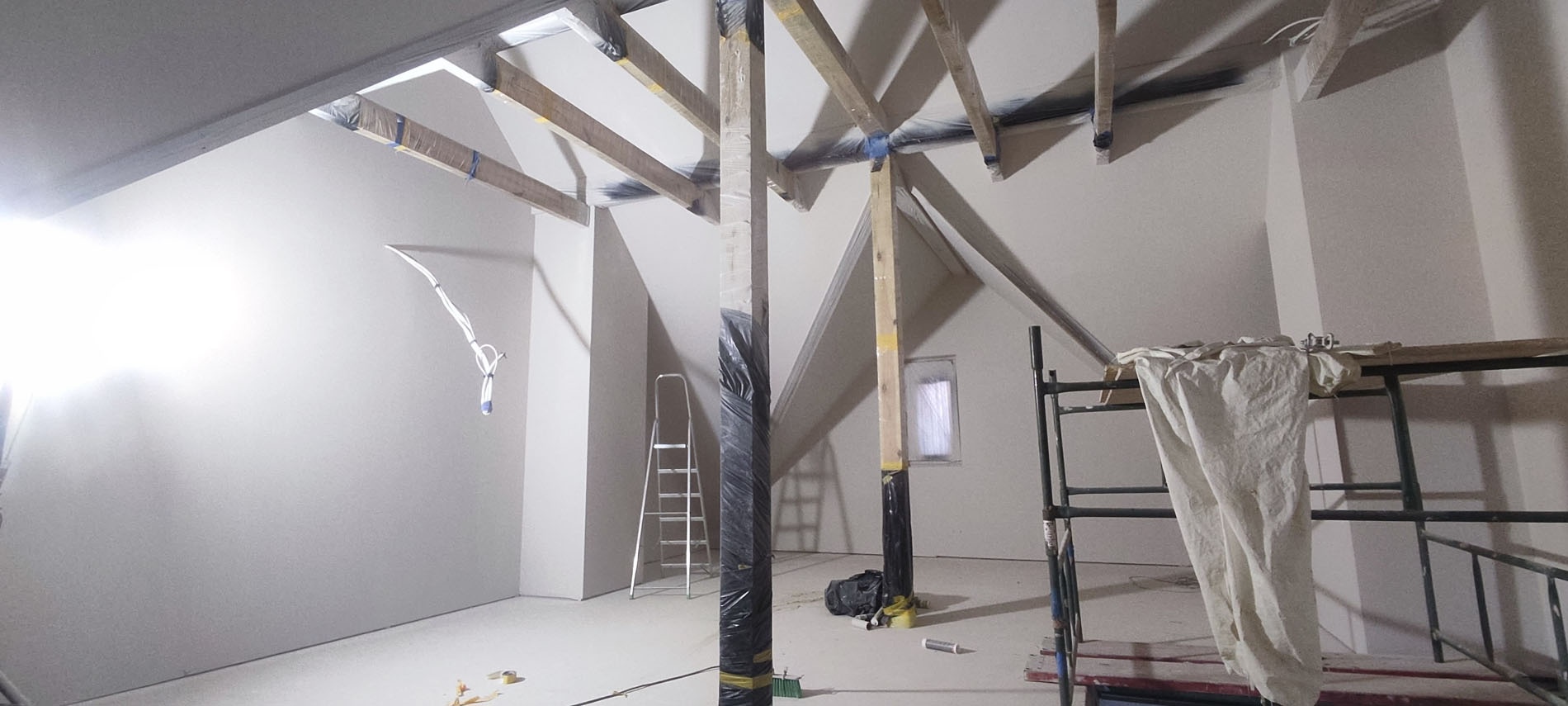 Galeria prezentuje zdjęcia ułożone zgodnie z kolejnością etapu prac. Poszczególne etapy to: zabezpieczenie okien, drzwi itp., przygotowanie podłoża, szpachlowanie, odpylanie ścian, gruntowanie oraz ostateczna faza czyli malowanie.
