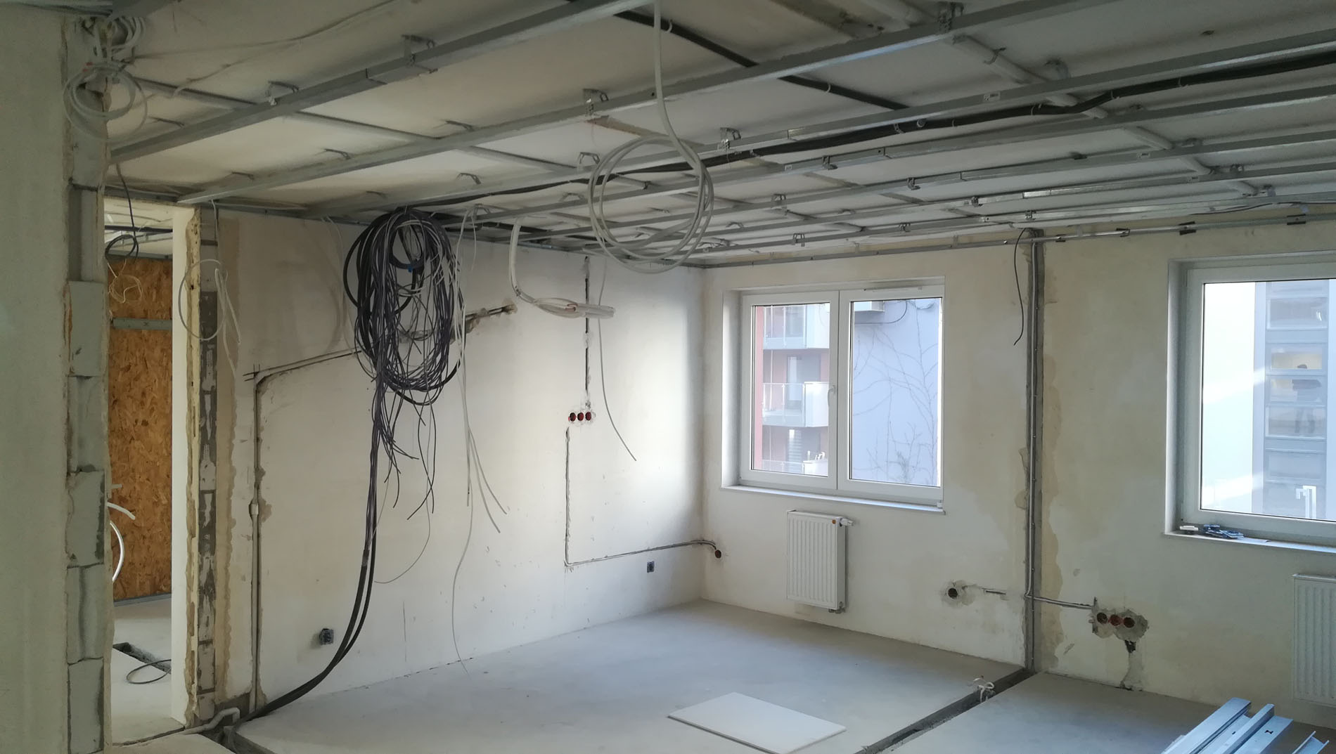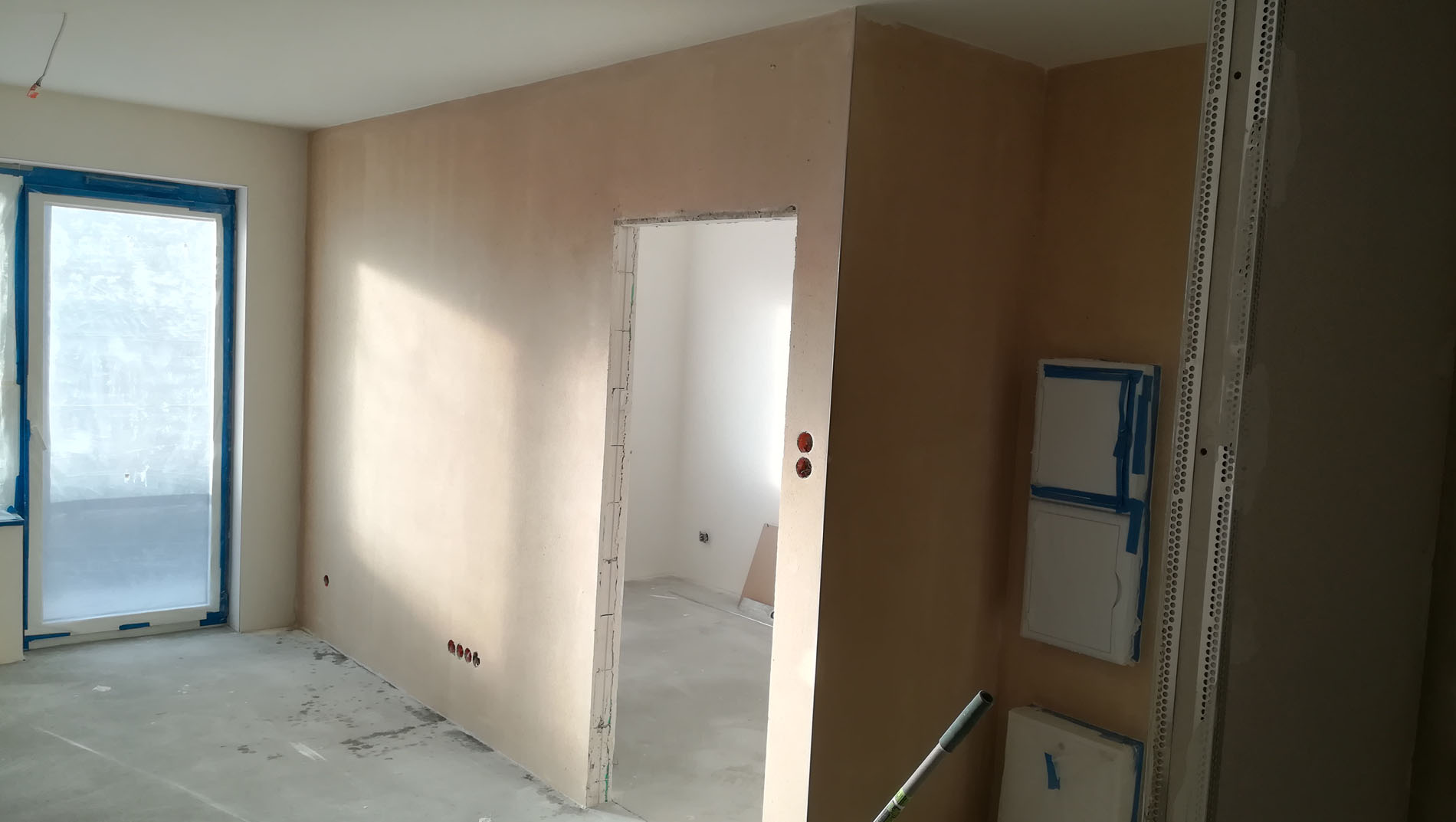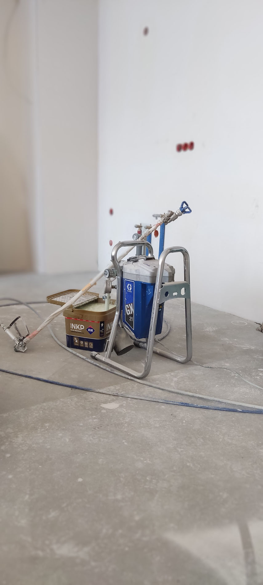 Galeria prezentuje zdjęcia ułożone zgodnie z kolejnością etapu prac. Poszczególne etapy to: zabezpieczenie okien, drzwi itp., przygotowanie podłoża, szpachlowanie, odpylanie ścian, gruntowanie oraz ostateczna faza czyli malowanie.